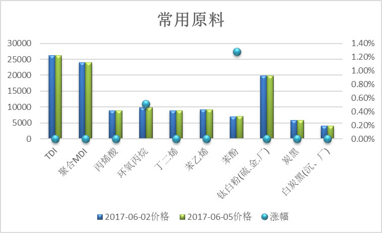 3.丙烯酸乳液:目前国内丙烯酸乳液市场交投尚可。原料方面,苯乙烯市场先抑后扬;丙烯酸丁酯市场库存低位,低端上探;MMA主流工厂调高挂牌价,市场报盘收到带动。目前乳液成本面再度上升,乳液厂家报价以暂稳为主,静待下游消化涨幅。预计后市价格仍以暂稳为主。