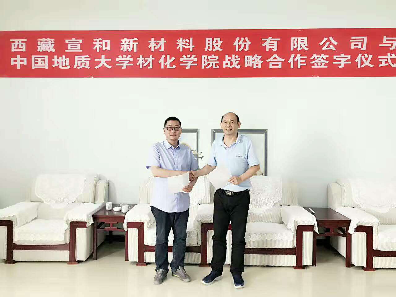 2017年6月13日,西藏宣和新材料股份有限公司与中国地质大学材化学院签订了技术研发合作协议。双方商定,在未来五年内西藏宣和新材料股份有限公司投资一千万研发经费与中国地质大学联合在无机材料领域展开科研合作,建设世界一流的无机材料实验室,力争在此领域内打造出世界领先的技术成果。