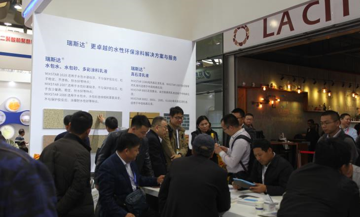 瑞斯达不断加快水性环保涂料解决方案客户业务部门的发展,为涂料客户市场提供富有竞争力的产品和解决方案,以满足其国内外客户的强劲市场增量需求。今年展会期间,瑞斯达带来了针对建筑涂料水包水、水包砂、多彩涂料、真石漆的水性环保涂料创新解决方案,让人眼前一亮,来往参观的人络绎不绝。瑞斯达副总经理郭玮先生表示:建筑涂料向高性能、环保解决方案发展是未来的一个重要方向,瑞斯达将致力于水性环保涂料解决方案的深度研发,帮助客户企业加速新产品的商业化进程。